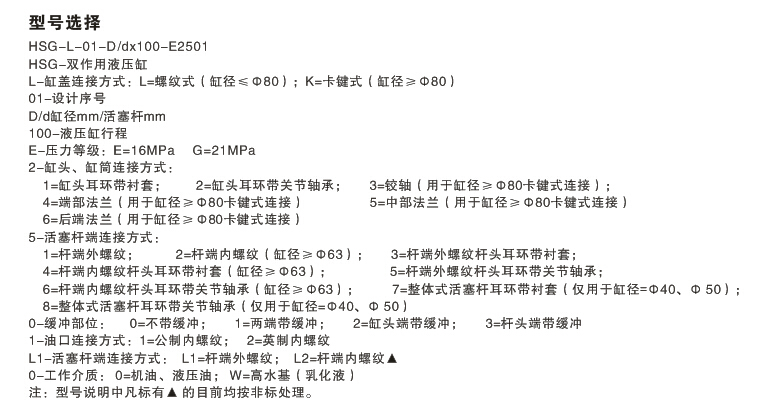 4)按照以上三條,可按照以下HSG油缸型號(hào)說(shuō)明,明確您需要的型號(hào)