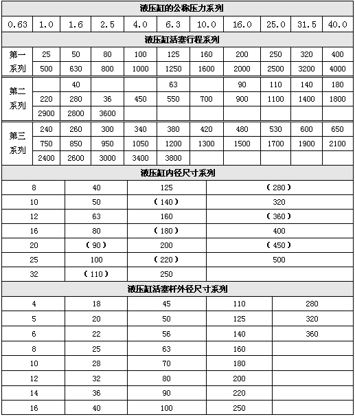 國家標(biāo)準(zhǔn)GB/T7938-1987規(guī)定了液壓缸公稱壓力系列